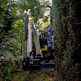 Втягиваемое   шасси обеспечивает несравнимую устойчивость для машины таких размеров, а возможность простого втягивания позволяет экскаватору проходить через узкие проходы. В сочетании с интегрированной, складной верх TOPS  означает, что проходы шириной 710 мм, и с небольшим пространством сверху, не являются препятствием для этой модели.