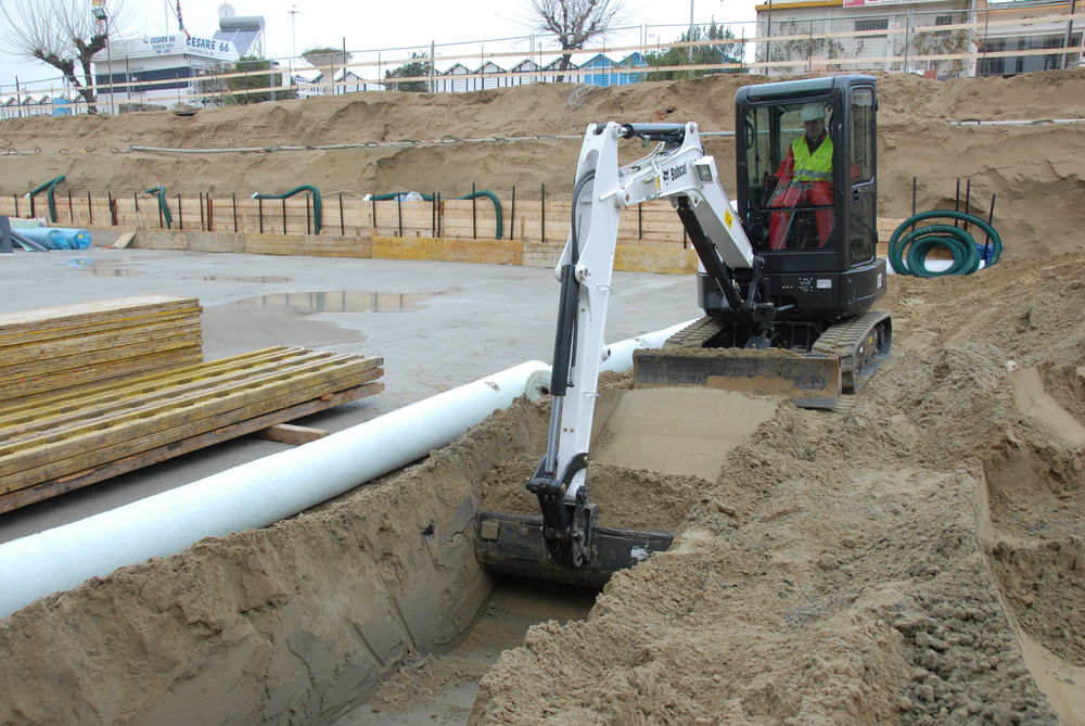 • Прочный и мощный отвал для обратной засыпки.