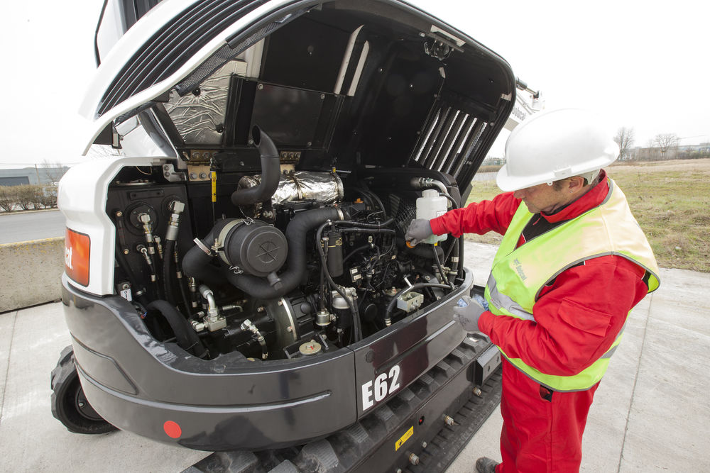При изготовлении мини экскаваторов была применена наиболее современная технология, чтобы  обеспечить простое и легкое обслуживание, с удобными точками проверки для максимальной эффективности работы. Благодаря применению деталей из порошка металлов, интервалы нанесения смазки для осей  рабочей группы были увеличены до  250 часов.