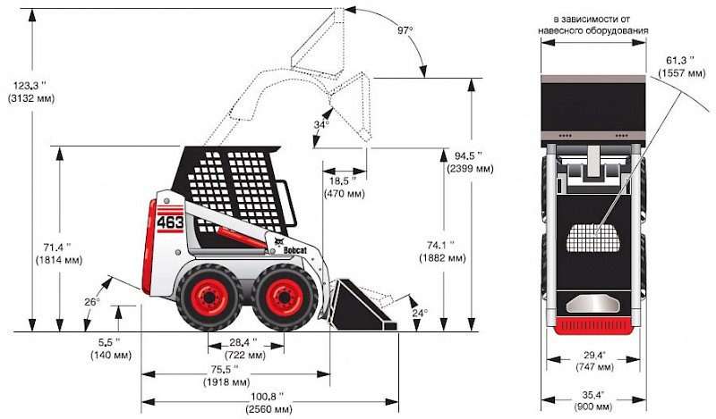 | Ширина со стандартным ковшом | 914 мм |