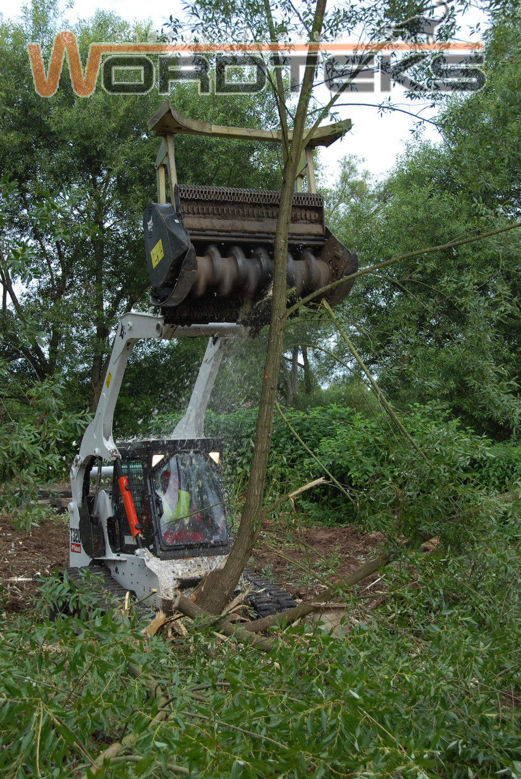 С помощью лесохозяйственной фрезы Bobcat® можно привести в порядок дикие заросли — быстро удалить и измельчить деревья и кусты.