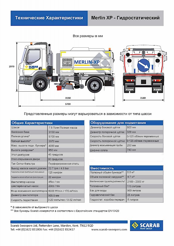 Краткий обзор конструкции для Merlin-XP заключался в создании дорожной уборочной машины, способной извлекать максимальную эффективность и производительность при установке на шасси 7.5 тонны. Поскольку вспомогательный дизельный двигатель уже задействован для всей полезной нагрузки, мы решили положиться на экологически чистую и хорошо зарекомендовавшуюся систему гидростатического подметания Scarab. Это решение позволило нам максимально увеличить пропускную способность бункера и воды при сохранении хорошего распределения веса в любое время. В стандартной комплектации 900-литровый резервуар Merlin XP, бункер объемом 5,5 м³ и производительность полезной нагрузки от 2100 до 2300 кг, более чем выгодно отличается от любой другой уборочной машины на 7.5 тонны с преимуществами низких затрат на топливо, а также низким уровнем выбросов.