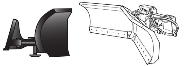 Это универсальное навесное оборудование можно использовать в пяти различных конфигурациях: V-образный отвал для очистки глубокого снега; прямой отвал для сгребания снега в кучу; отвал в форме черпака, для сгребания снега в кучу; и отвал с углом отклонения 30 градусов влево или вправо для продолжительного сдвигания снега.